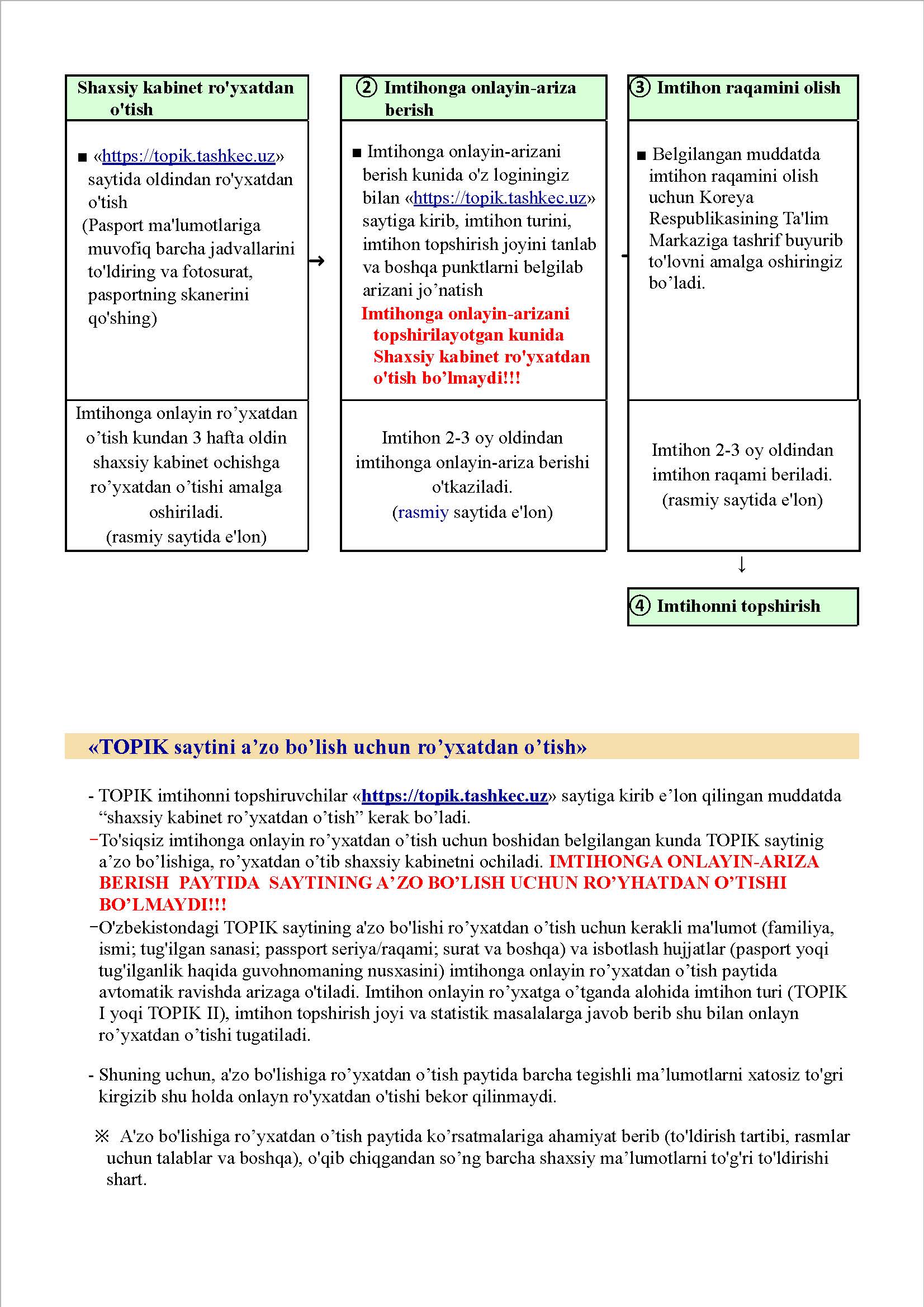 2020 yilda Xalqaro koreys tili bilimni aniqlash«TOPIK» imtihoni o’tkazish haqida ma'lumot