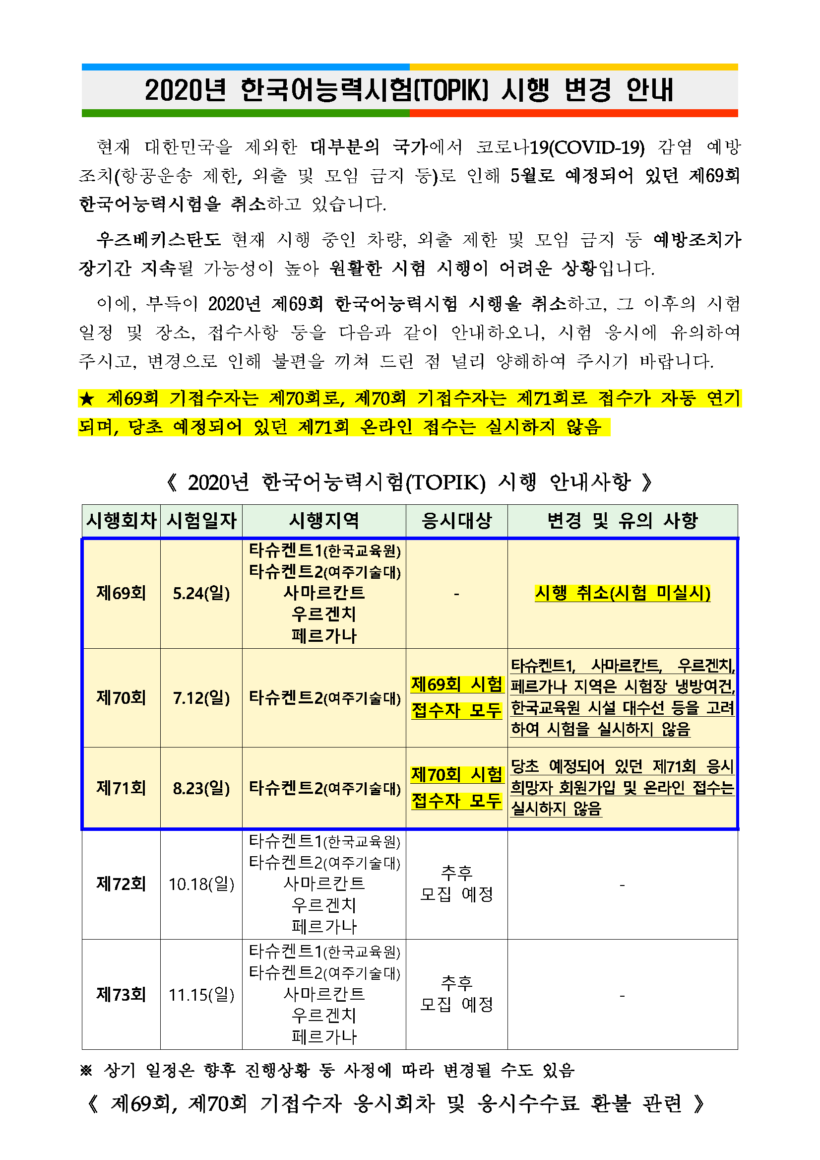 Ø  TOPIK darajasi 4 yoki undan yuqori bo'lgan arizachilar (amal qilish muddati tugamagan bo’lishi kerak);