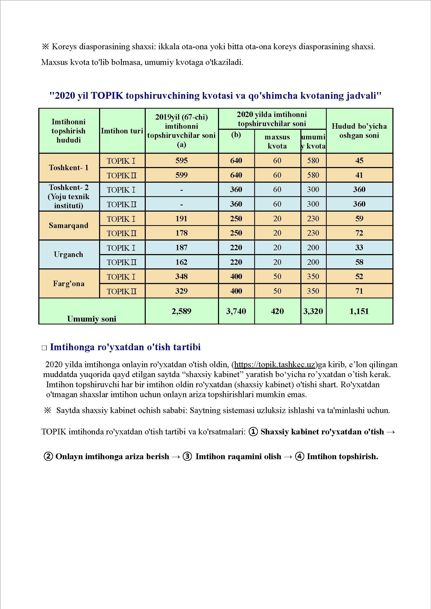 2020 yilda Xalqaro koreys tili bilimni aniqlash«TOPIK» imtihoni o’tkazish haqida ma'lumot